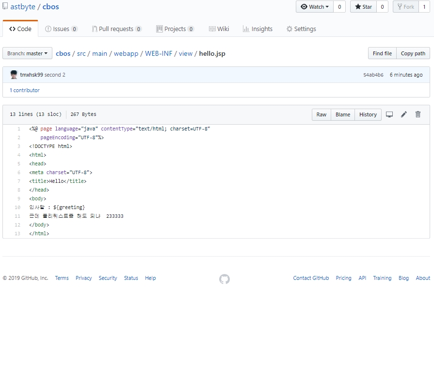 내용을 보면 메세지 커밋내역 바뀐 코드 내역이 보인다.
